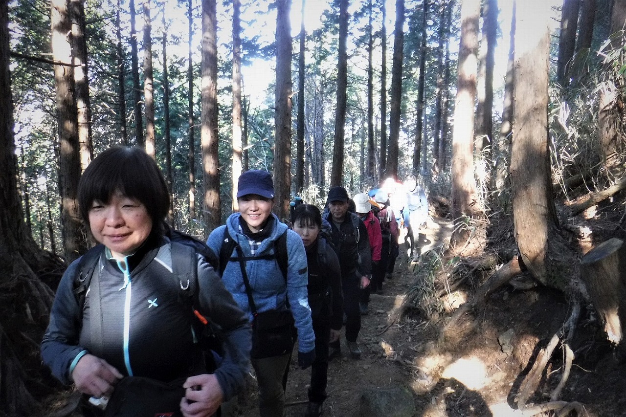 Fukuリーダーの挨拶後、出発。登山口から乙女峠までは少し地味な道をのんびり登る。