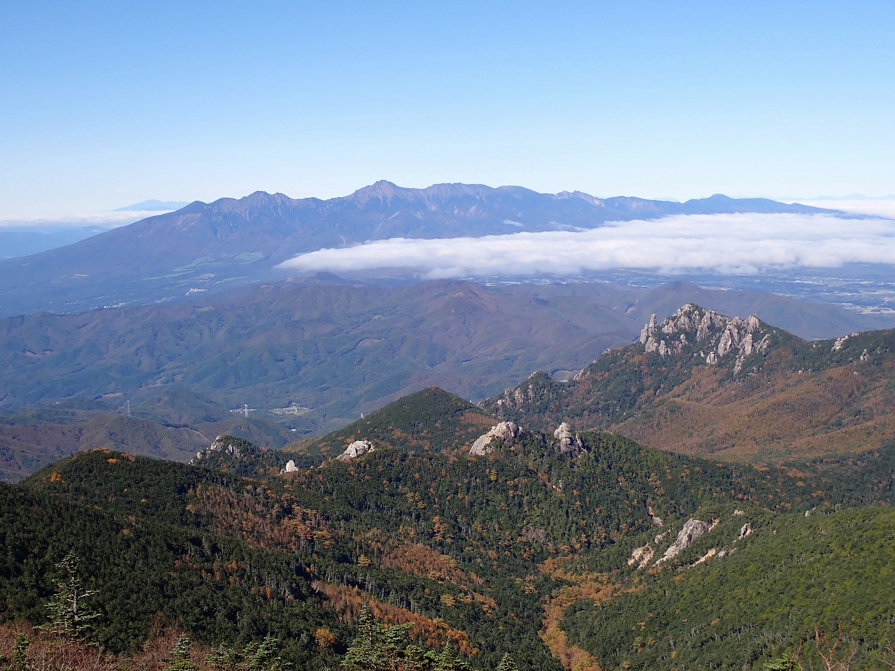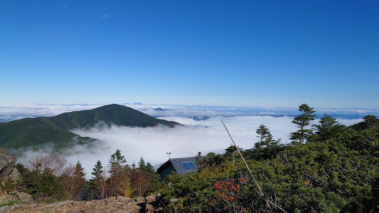 昨夜の雨で地面や木の枝や葉っぱが濡れ、気温も下がり吐く息も白くなるほどの寒さだったが、雨が上がりカッパが着ずに済んだが上から水が落ちてくるので帽子は手放せない。傍にクライミング用の岩がある林道を1時間20分程歩くと登山口になり、なだらかな道を歩き、松やしゃくなげの葉が道を埋め、見るとしゃくなげの群生になっている。しばらく登っていくと雲海が見えた。すぐに消えるかと思っていた雲海もしばらく消えずにいた。金峰山小屋の標高2500mくらいまで苔むした登山道で濡れていて綺麗だった。金峰山小屋のところに大きな岩があり登ってみたが降りるのが怖くなった。岩から見る雲海から覗く山々がお城のように見えて素晴らしい景色だった。金峰山小屋からは岩がごろごろした道を20分位登っていくと金峰山山頂。天気がはっきりしなかったが山頂は天気が良く360度展望。登っている時はほとんど人に会わなかったが山頂は広くて人が多い。山頂で写真を撮り、五丈岩に行くと五丈岩は立ち入り禁止になっていた。帰りは来た道を下る。登りきつかった登山道も下りは楽だ。ひたすら下り林道にでると行きでは気づかなかったクライミング用の岩がいくつもあり登っている人もいる。岩に登ってみたくなる登山でした。